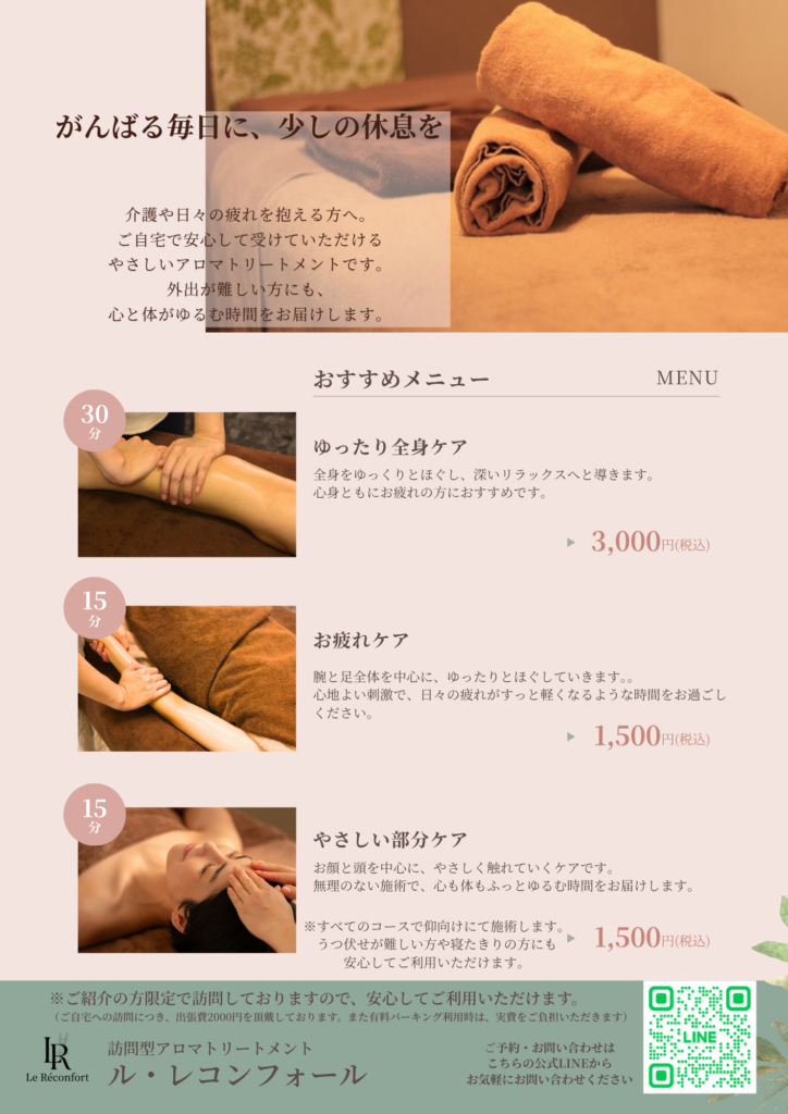 自宅がサロンになる、心安らぐアロマタイム ~ル・レコンフォール~